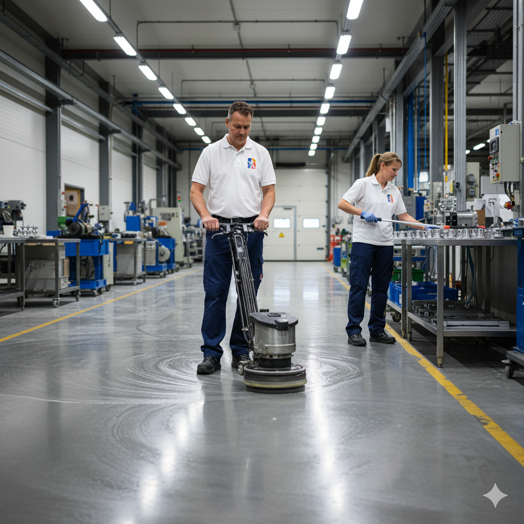 Onze expertise reikt verder dan reguliere schoonmaak. Voor het complete onderhoud van uw bedrijfsruimtes— van werkplaatsen en fabrieksruimtes tot complete bedrijfsunits — bieden wij specialistische diensten aan. U kunt bij ons terecht voor professioneel vloeronderhoud (ook voor zwaarbelaste vloeren), grondige dieptereiniging van machines en interieur, technisch onderhoud aan uw installaties en de volledige reiniging van gevels en daken.