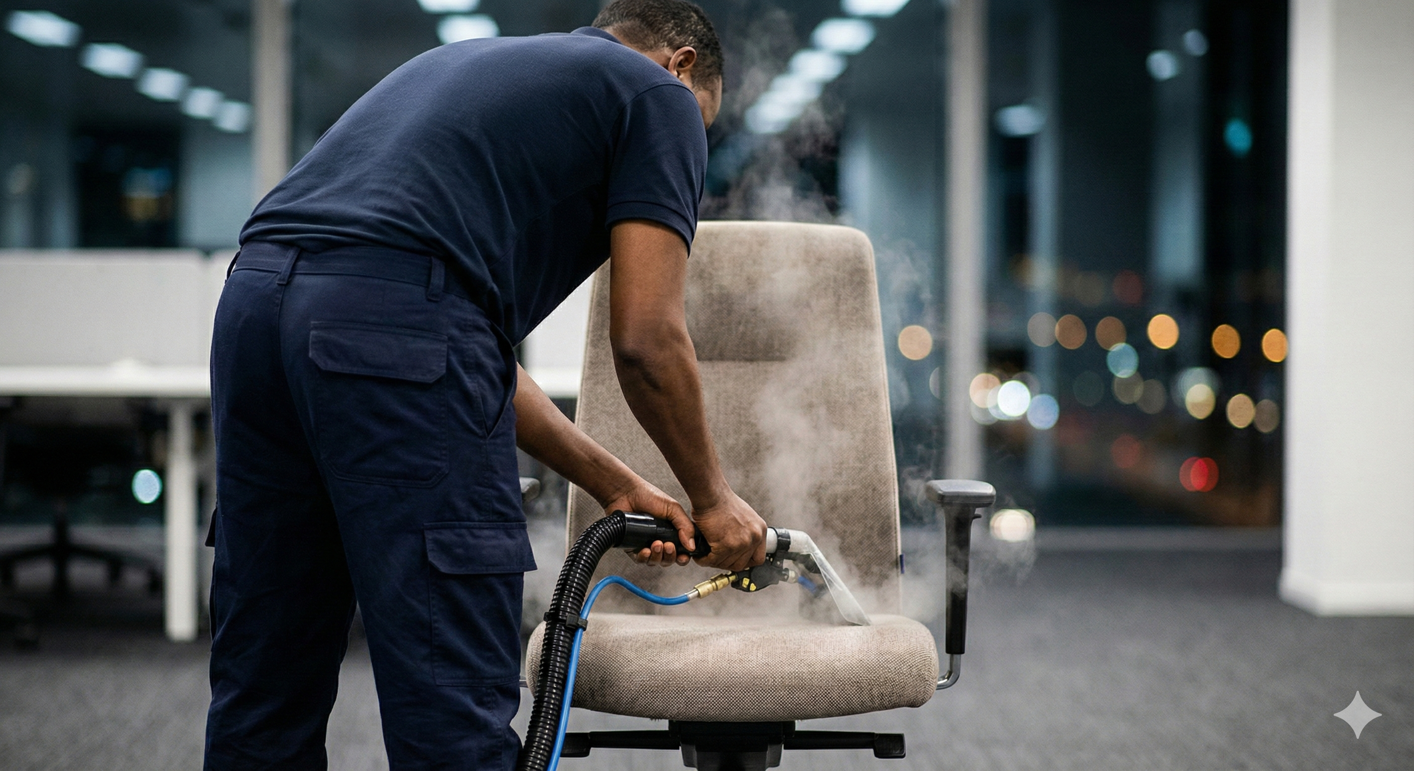 - Dieptereiniging van Meubelstoffen: Het met de sproei-extractiemethode reinigen van bureaustoelen, banken en ander gestoffeerd meubilair, waarbij vuil en allergenen diep uit de vezels worden verwijderd.