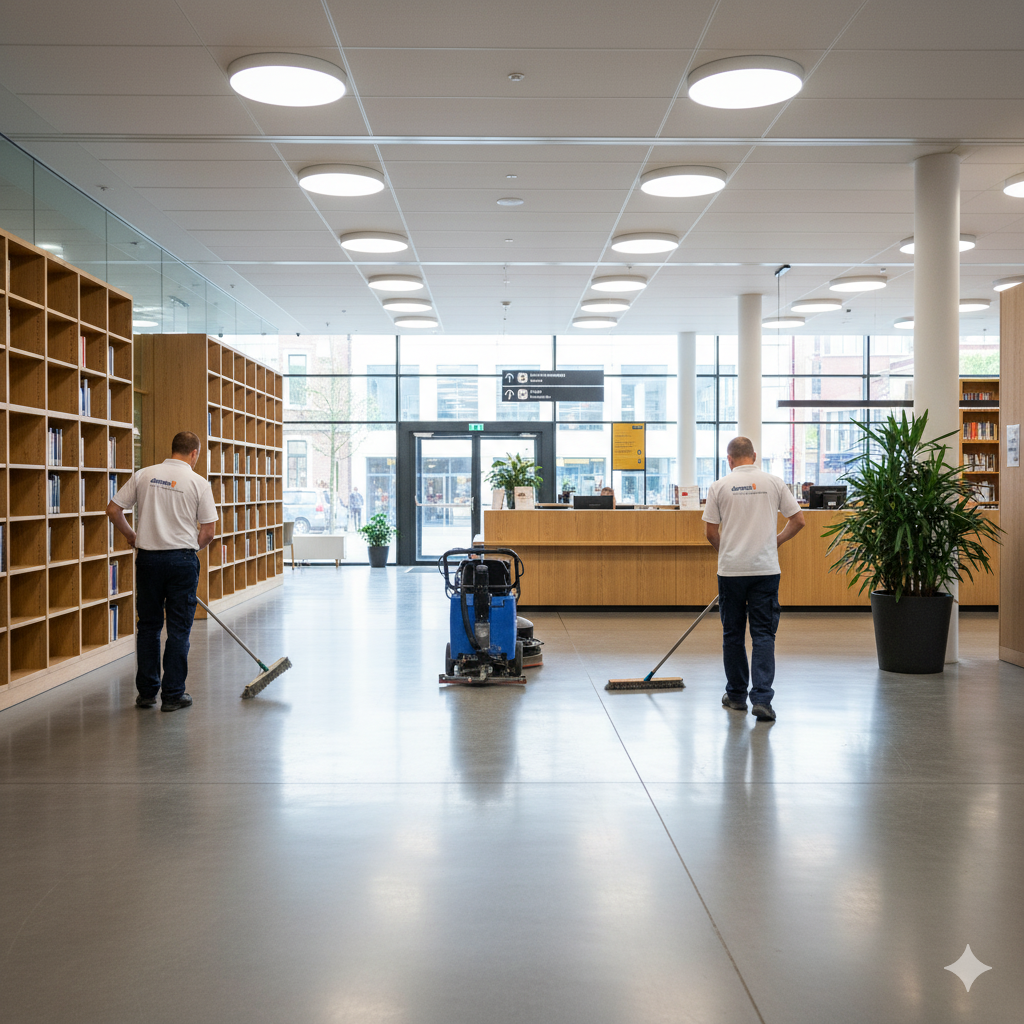 - Schoonmaak publieke en kantoorruimtes: Entrees, publieksbalies, raadszalen, gangen en kantoorverdiepingen.