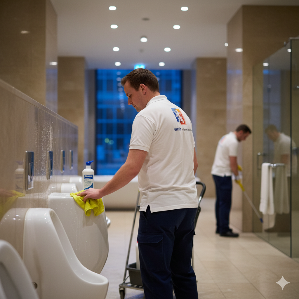 - Dieptereiniging van Toiletten en Urinoirs: Het grondig reinigen, ontkalken en desinfecteren van zowel de binnen- als buitenzijde, inclusief moeilijk bereikbare delen.
