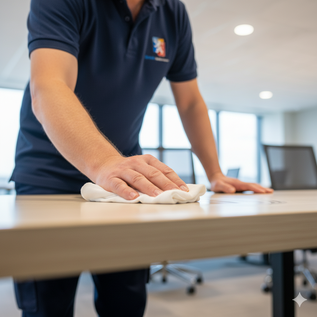 - Schermen en glas: Een ruimte voelt pas schoon als uw bureau aan kant is. Wij nemen tijdens reguliere schoonmaak ook glas en schermen mee, want een schone werkomgeving zorgt voor een prettige werkervaring.