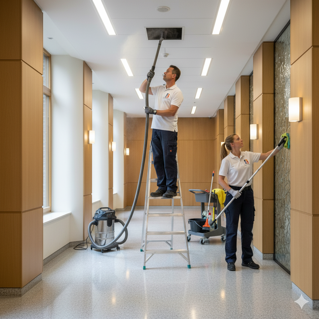 - Schoonmaak algemene ruimtes: Entrees, trappenhuizen, liften en gangen.